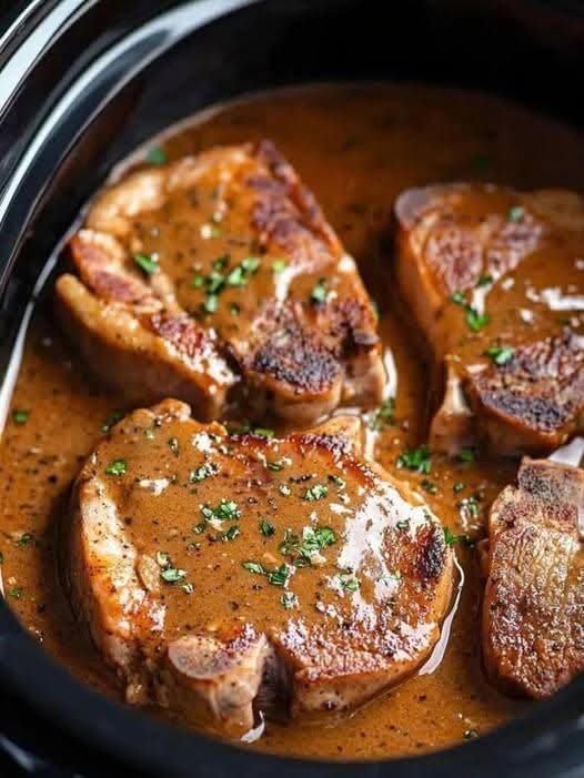 Serve Warm: Serve the pork chops with the creamy sauce from the slow cooker drizzled over the top. Pair them with mashed potatoes, rice, or your favorite side dish.