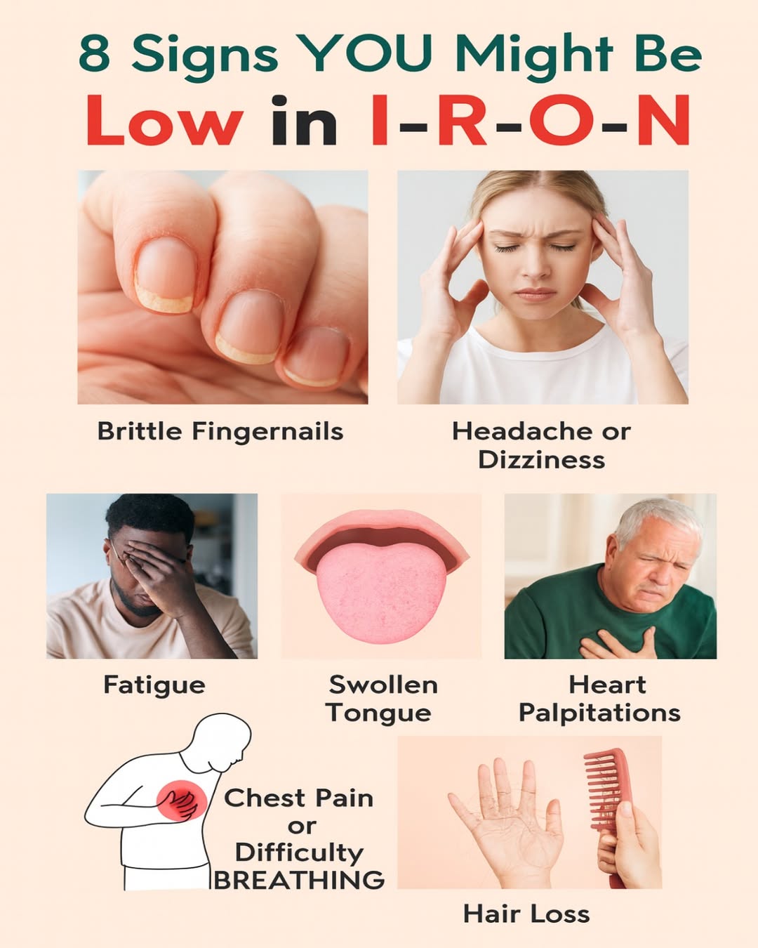 🩸 8 Signs Your Body Is Lacking Iron – Don’t Ignore These!