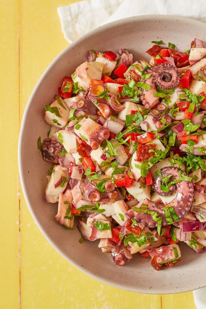 Portuguese Octopus Salad, or Salada de Polvo, is a refreshing and flavorful dish that showcases tender octopus tossed with vibrant vegetables and herbs. It’s perfect as a summer appetizer or …