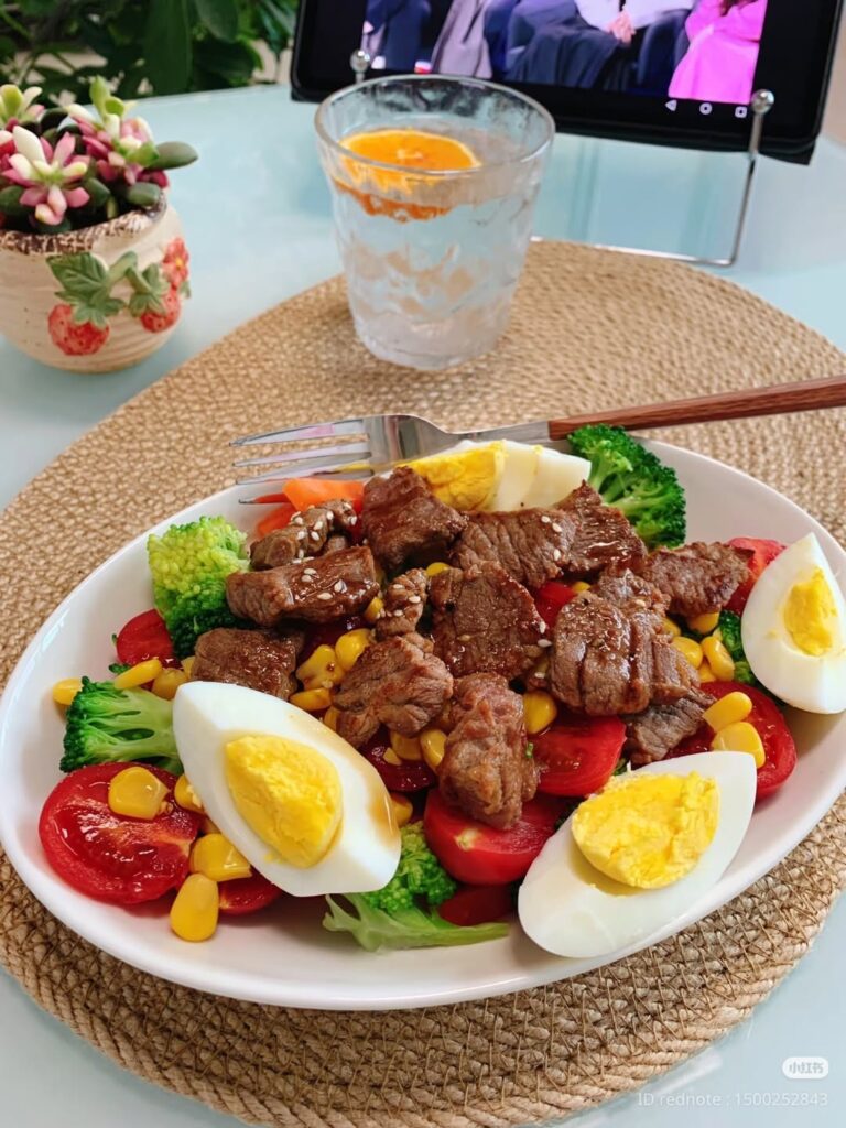 Ingredients: 200g beef sirloin or steak cubes 2 boiled eggs (halved) 1 cup cherry tomatoes (halved) ½ cup cooked corn kernels 1 cup steamed broccoli florets 1 tbsp soy sauce …