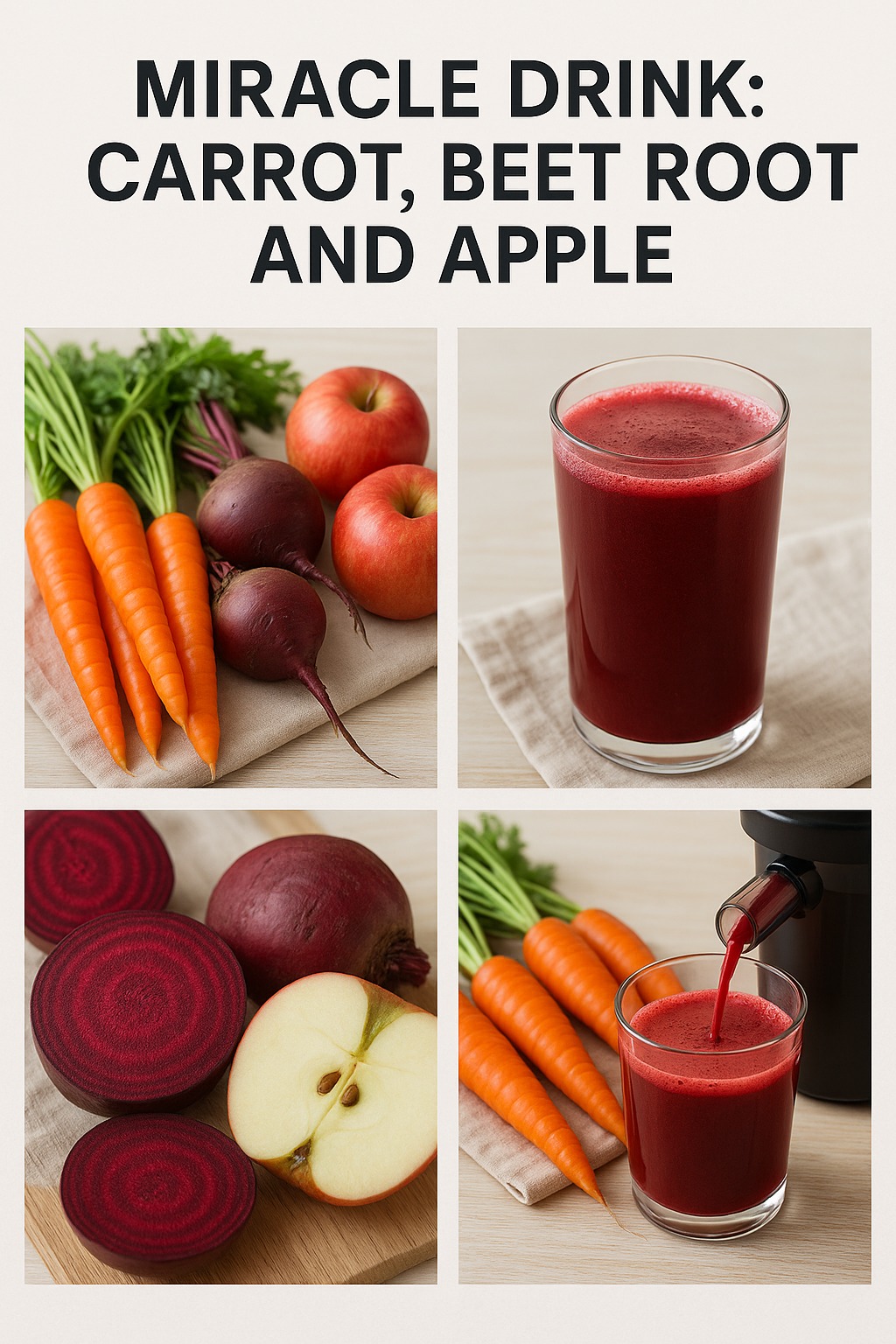 Try this simple mix of carrot, beetroot, and apple—often called a “miracle drink” for a good reason! It’s full of vitamins, minerals, and antioxidants that can make a real difference in how you feel every day.