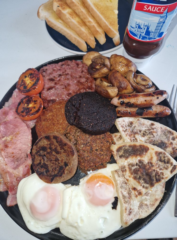🏴 Full Scottish Breakfast All-Dayer . 🧺 Ingredients 🥔 Homemade Tattie Scones: 1 cup mashed potatoes ½ cup flour 1 tbsp butter Salt to taste 🍳 Main Components: 2 slices …