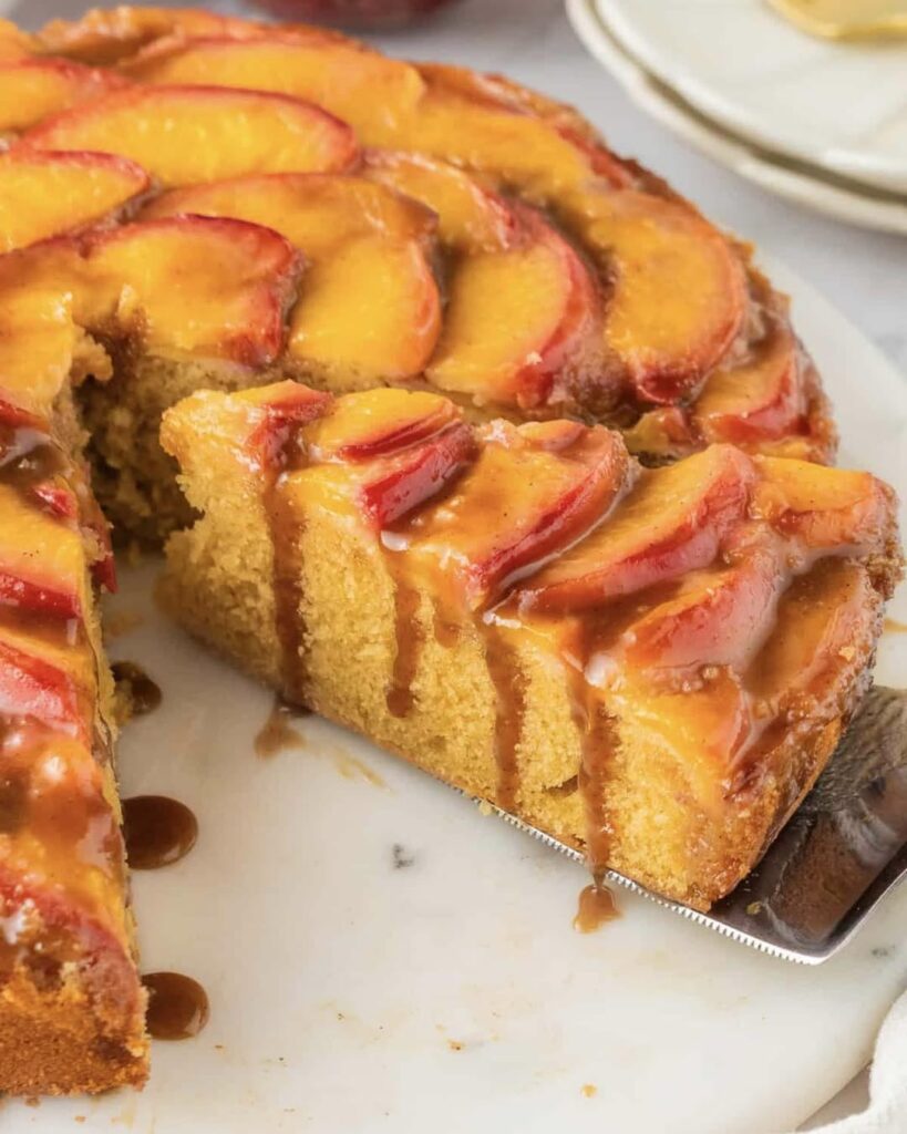 Peach Upside Down Cake with Brown Sugar Glaze π