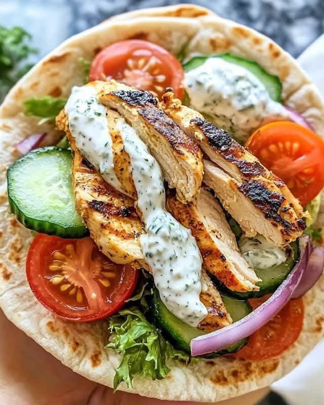 Greek Chicken Pita Wrap with Tzatziki & Fresh Veggies
