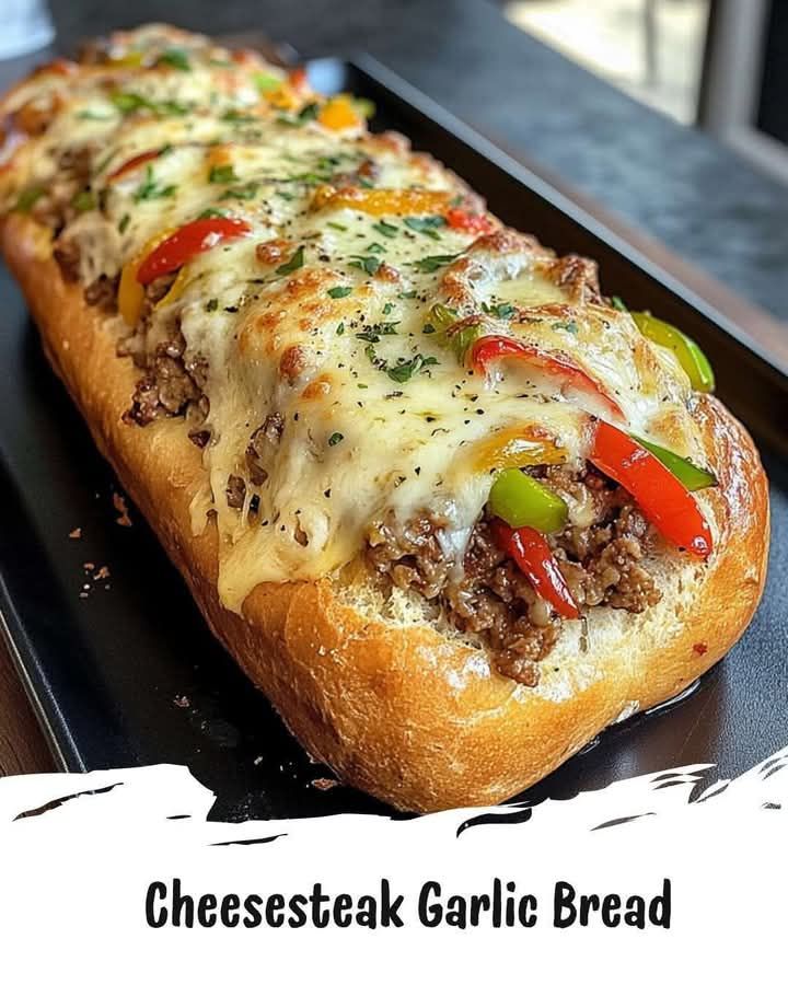 This indulgent garlic bread is filled with savory cheesesteak goodness!