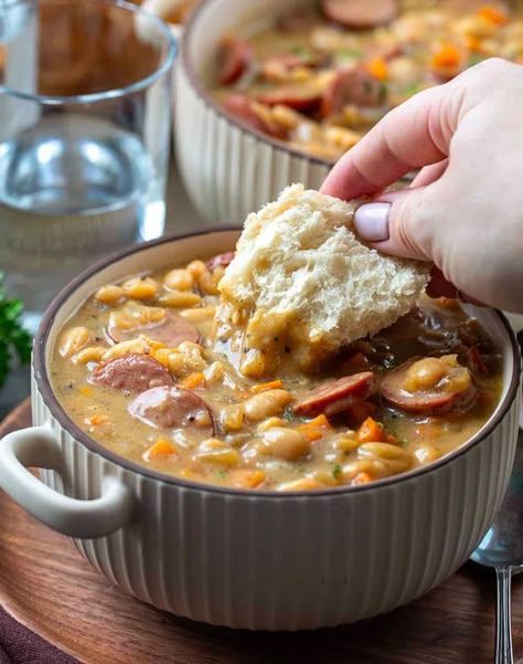 Here’s a hearty and satisfying recipe for Creamy Bean Soup with Kielbasa—a perfect blend of smoky sausage, tender beans, and velvety broth 🥣🌭: