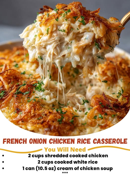 Creamy, cheesy, and loaded with French onion flavor—this easy chicken rice casserole is a cozy dinner winner every time!