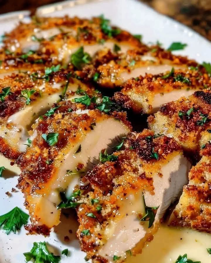 Once your garlic Parmesan crusted chicken is done, remove it from the oven and let it rest for 5 minutes before serving. This resting period allows the juices to redistribute, keeping the chicken tender and juicy