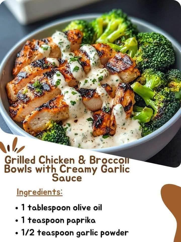 Grilled Chicken & Broccoll Bowls with Creamy Garlic Sauce