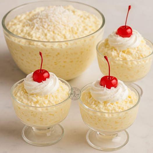 In a large mixing bowl, combine the crushed pineapple (drained), instant coconut cream pudding mix, shredded coconut, and whipped topping.