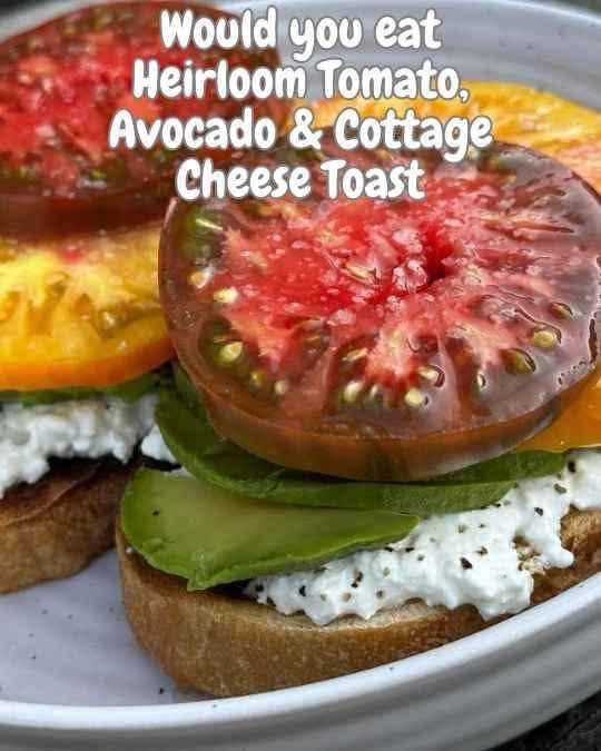 Here’s a delicious and nutrient-packed recipe for Heirloom Tomato, Avocado & Cottage Cheese Toast—perfect for breakfast, lunch, or a light snack 🥑🍅🧀: