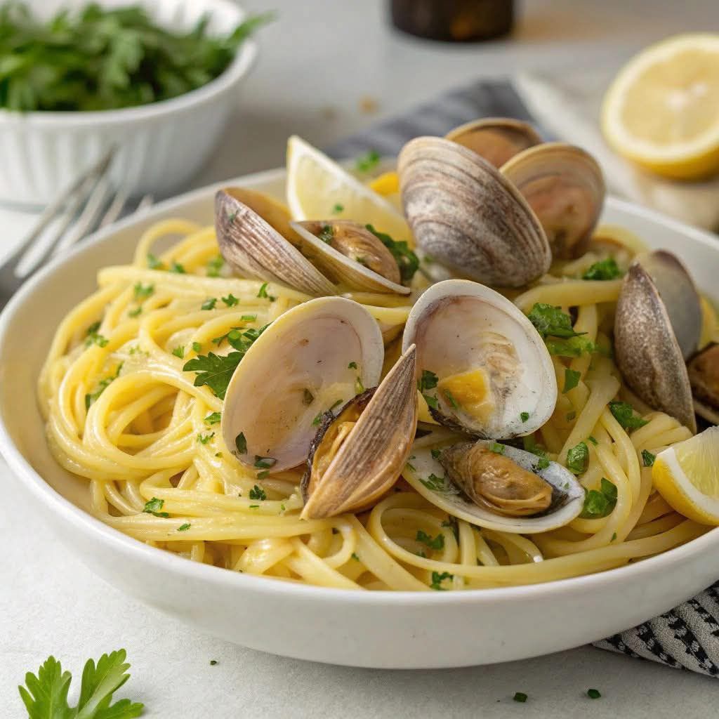 4️⃣ Combine: Toss linguine into the skillet with clams. Add reserved pasta water if needed to loosen and silky coat the sauce.