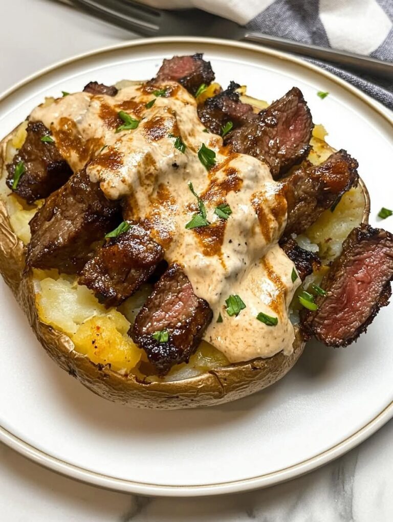 Finish the potatoes: Lift and drop each potato from about 12″ off the pan to fluff the inside. Cut the potatoes down the center to open. Fluff with a fork and spread with remaining butter.