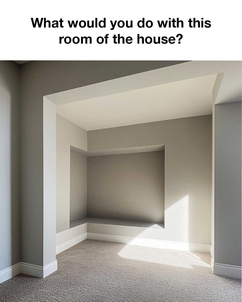 The space depicted in the image you provided shows a small, enclosed nook with light gray walls, soft carpeting, and clean white trim. This cozy and minimalistic space has a lot of potential for customization, and the neutral color scheme provides the perfect canvas for different functional and decorative transformations.