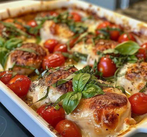 Caprese Chicken Casserole is a harmonious blend of succulent chicken breasts, vibrant grape tomatoes, aromatic garlic, and a symphony of herbs and spices, all topped with a decadent layer of melted mozzarella cheese. This dish captures the essence of Italian cuisine, marrying simplicity with sophistication to deliver a truly unforgettable dining experience. Whether you’re cooking for a special occasion or simply craving a comforting meal, Caprese Chicken Casserole is sure to satisfy even the most discerning palates.