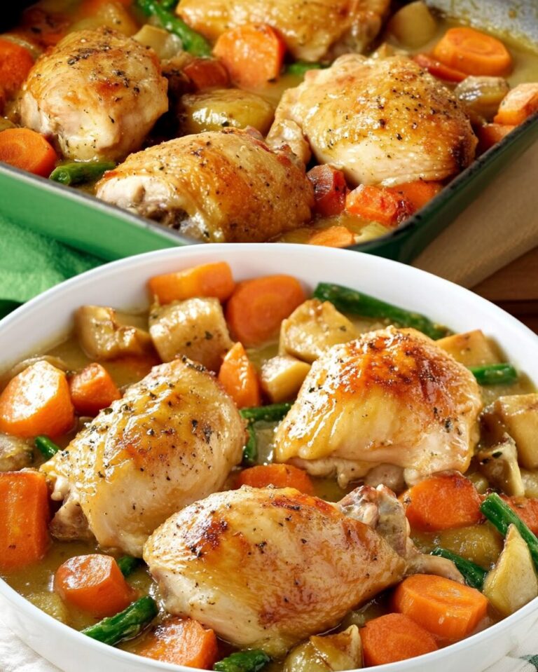 This Oven-Baked Chicken with Vegetables and Gravy is a comforting, one-pan dish that combines tender, golden chicken with perfectly cooked vegetables and a rich, savory sauce. Whether served for a family meal or shared with guests, this dish is flavorful, hearty, and easy to prepare. It’s a recipe you’ll want to keep on repeat for its simplicity and delicious results.