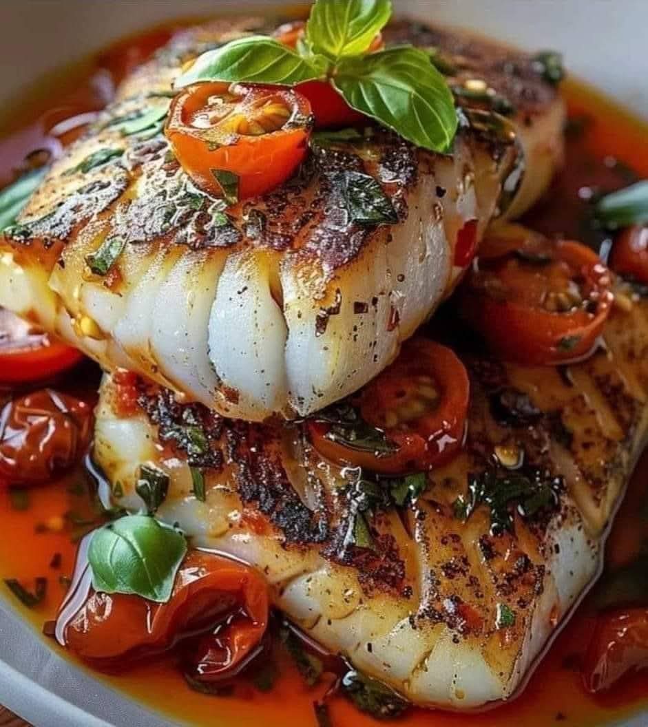 Enjoy your Pan-Seared Mediterranean Cod in Tomato Basil Sauce—a flavorful and healthy seafood dish that’s easy to prepare and delicious to eat! 🐟🍅🌿