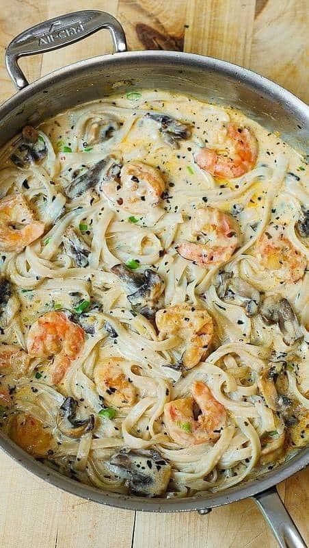 Pasta with Camaroes and mushrooms. Perfect to accompany with a white wine!! Yummy!!!