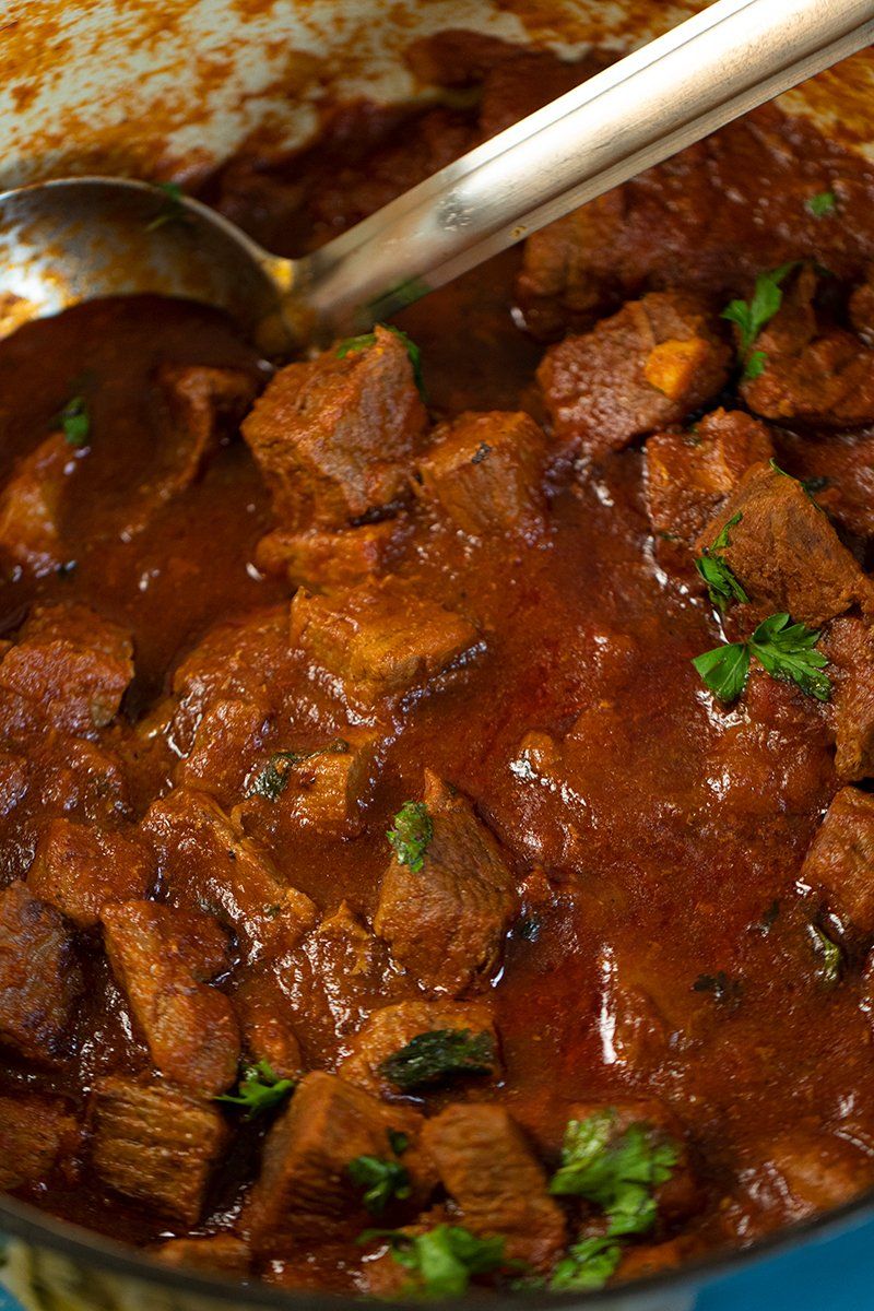 - Stir in tomatoes, wine, water, and all the spices. Cover and simmer on low heat for 2–3 hours until the meat is tender.