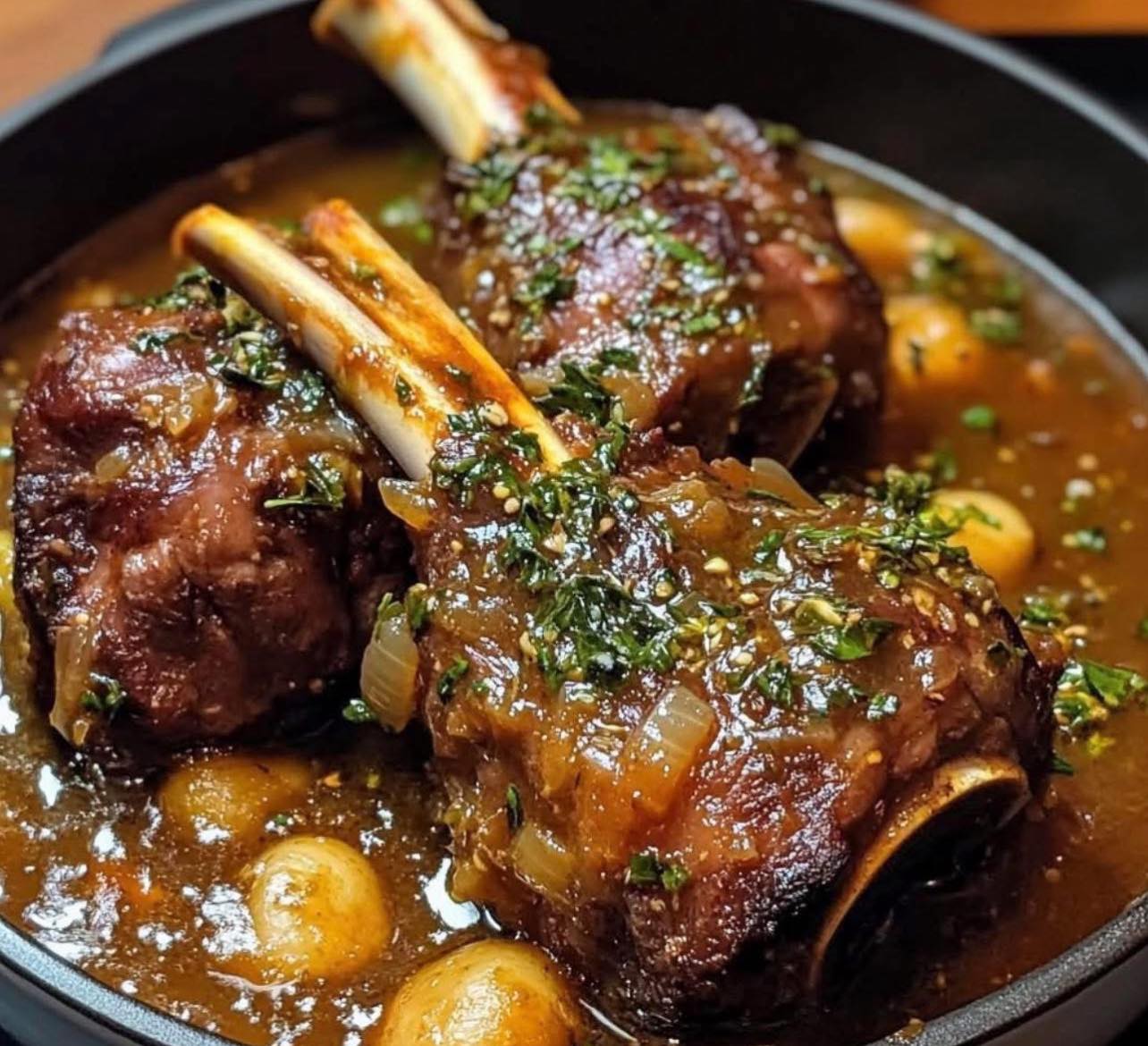 Here’s a delicious recipe for **Slow-Braised Lamb Shanks with Aromatic Herbs and Silky Pan Gravy**: