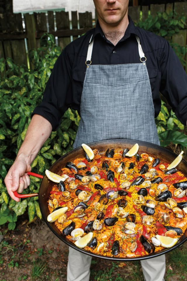 • Cooked over a charcoal grill in a traditional paella pan