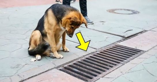 They eventually reached a busy street, where she observed the dog heading toward a storm drain. He sat down by it, dropped one of the treats inside, and then ate his own.