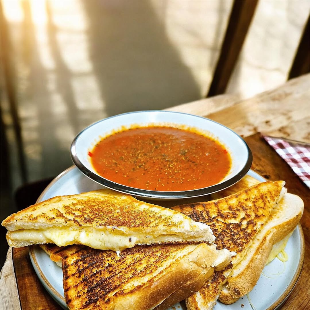 Tomato Soup with Grilled Cheese Sandwiches