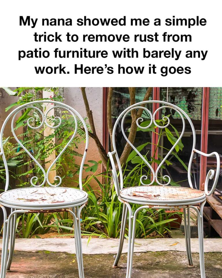 To follow my nana’s rust removal method, you’ll need the following materials: baking soda, white vinegar, a small bowl, a soft cloth or sponge, and a brush with soft bristles. Optionally, you might want to have some lemon juice on hand for particularly stubborn rust spots. These materials are inexpensive and readily available, making this method accessible to anyone looking to refresh their patio furniture.
