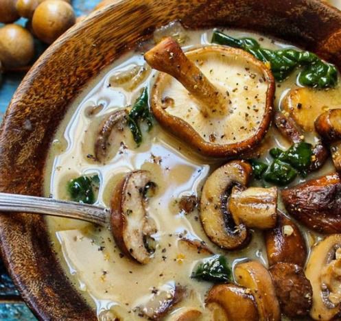 Wild Mushroom, Caramelized Onion & Kale Soup